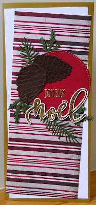 Pour ma publication de novembre, ben oui... une carte de Noël! Faut s'y mettre, ça s'en vient quand même vite! Et la planche d'étampe 2102 Souhaits Noël #1 est parfaite, avec ses textes et ses souhaits! J'ai utilisé les deux textes dans 2 encarts différents sur ma carte à pliages multiples (idée trouvée sur Pinterest). J'ai aussi utilisé un des souhaits de cette même planche.